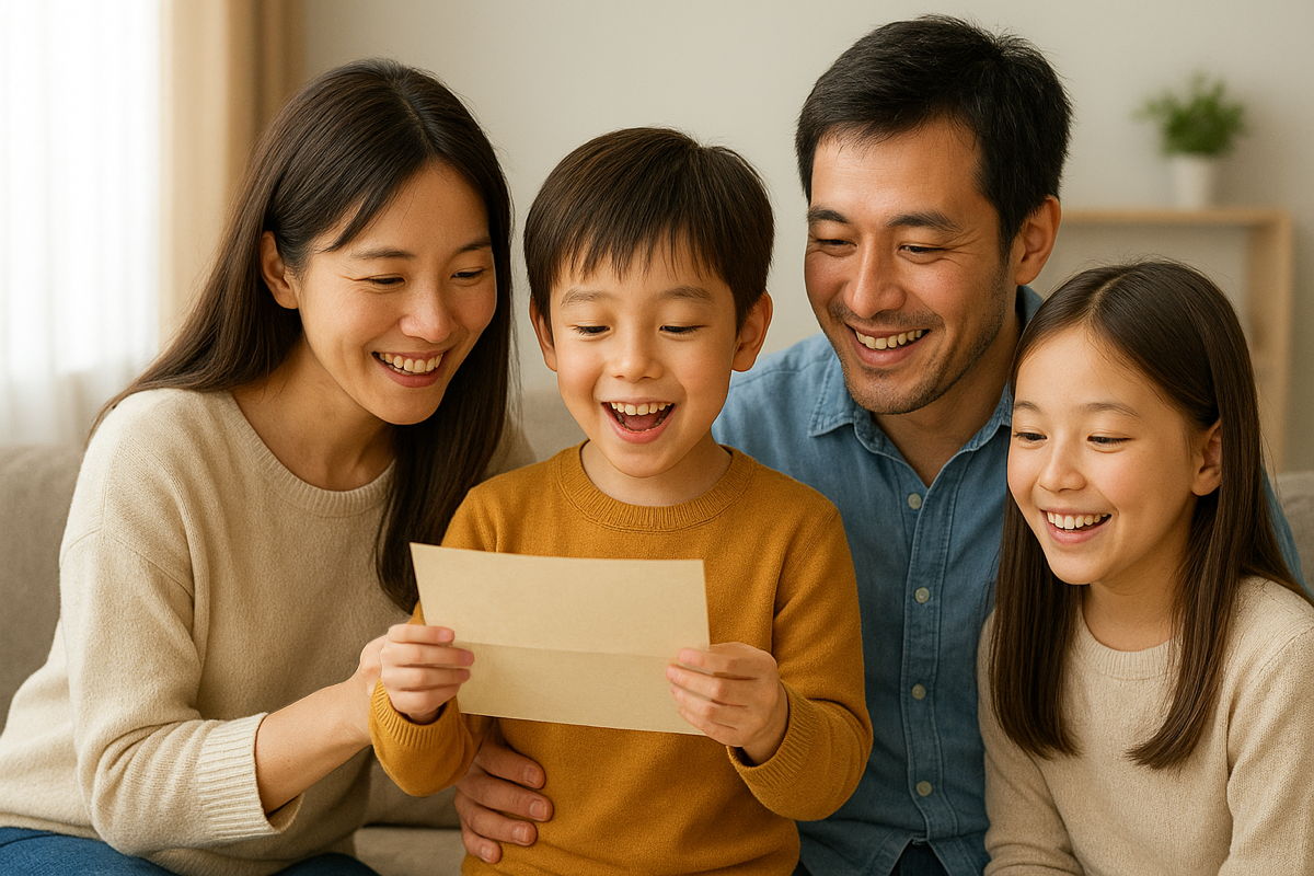 届いた手紙を開くと、「〇〇ちゃんへ」 の文字を見た瞬間に目を丸くして、